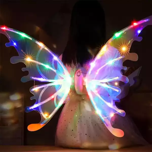 Asas de Fada e Borboleta Elétricas Cintilantes com Luzes LED e Música para Crianças