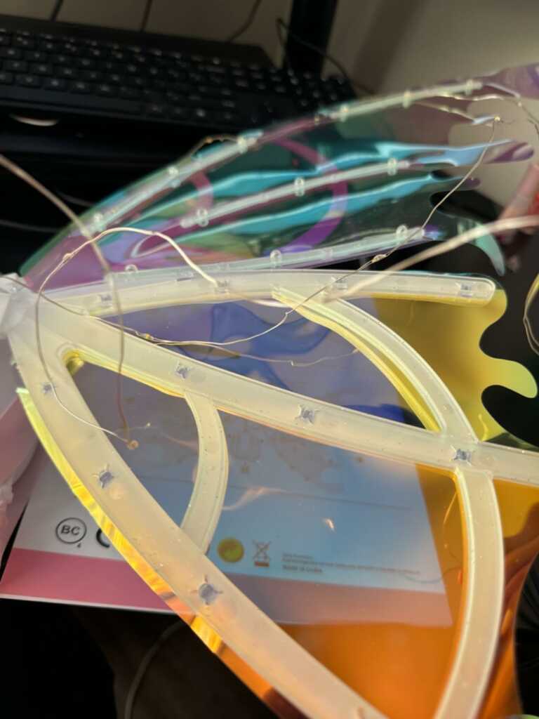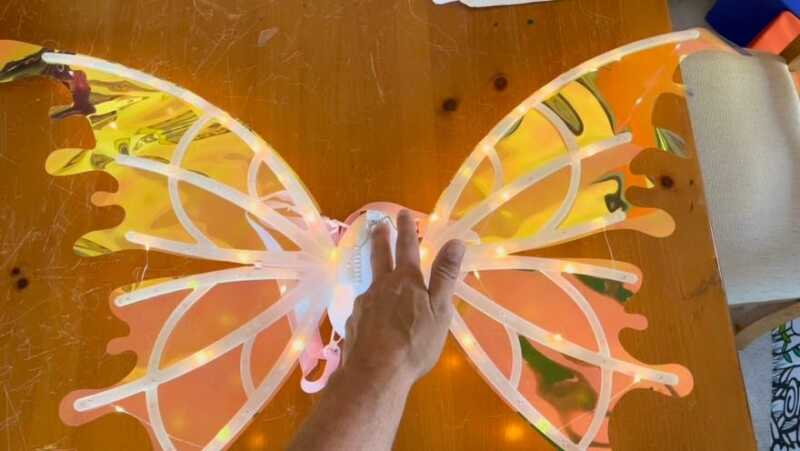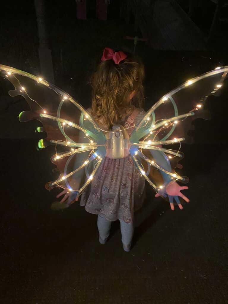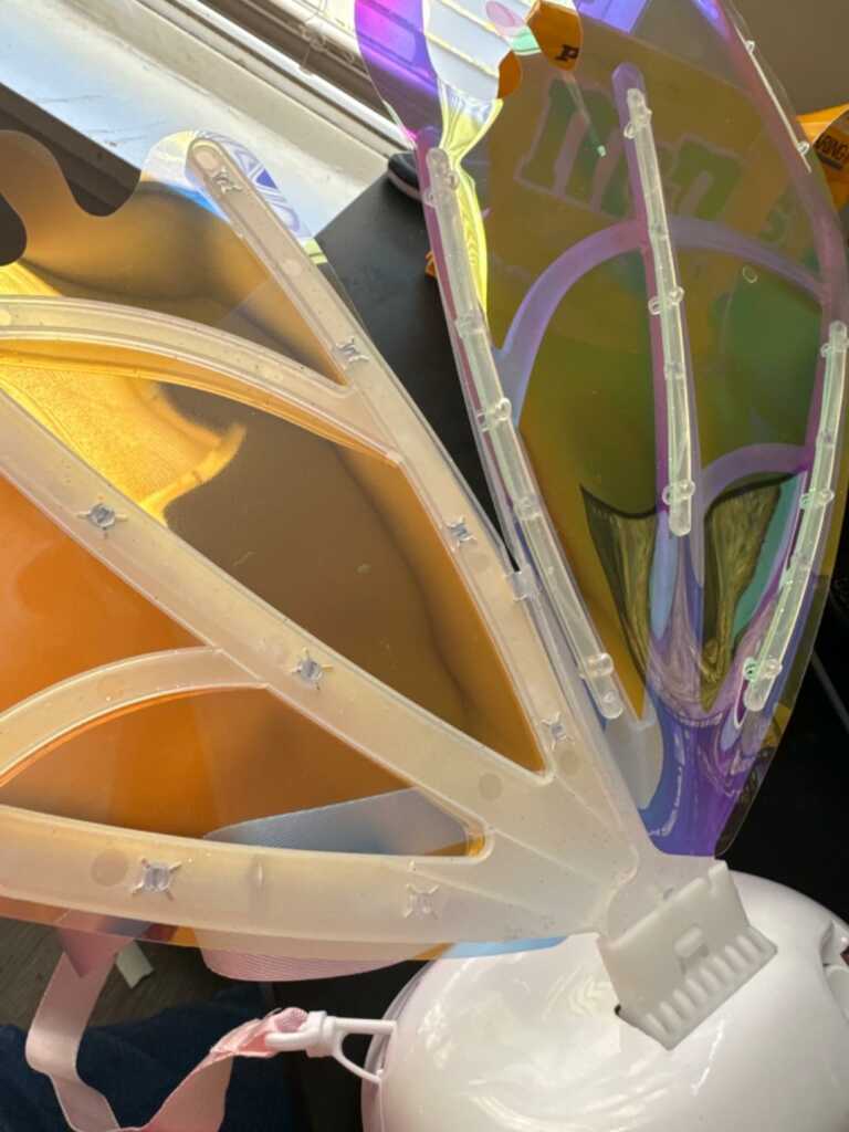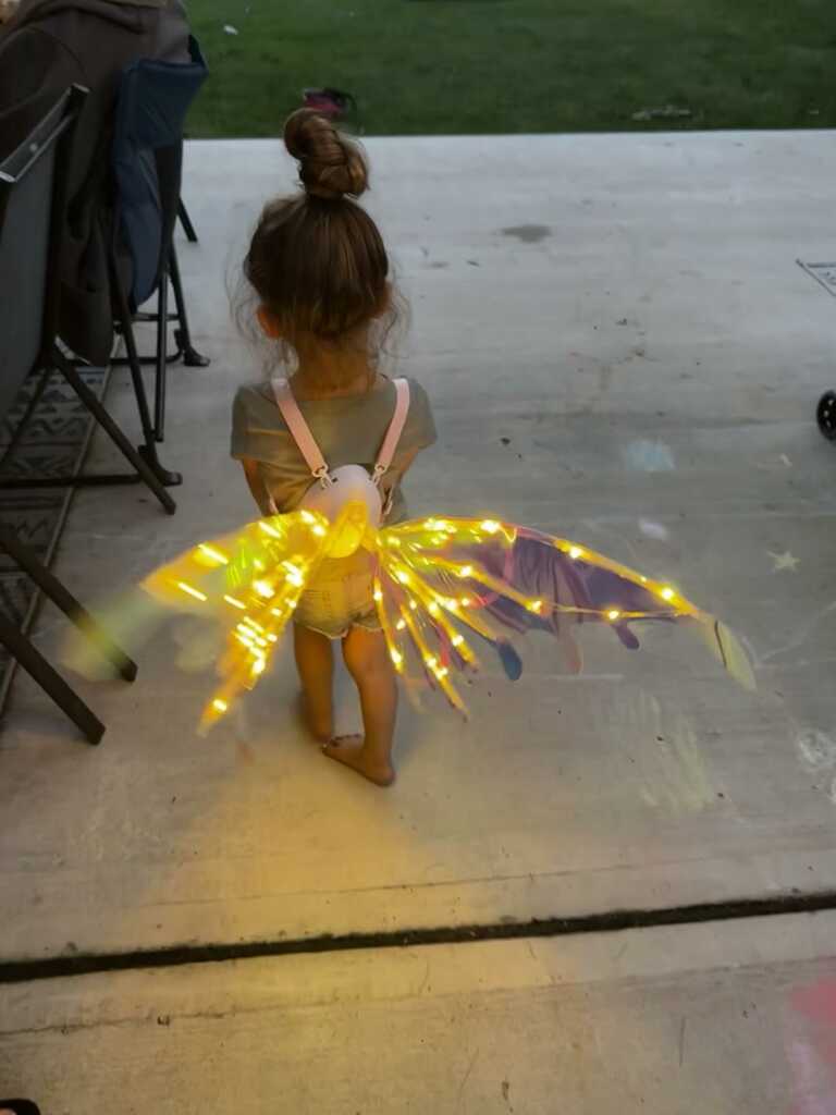 Asas lindíssimas! As luzes criam um efeito mágico e o movimento parece real. Montar leva algum tempo, mas vale a pena. A minha filha de 5 anos ficou super feliz e não quer tirá-las.